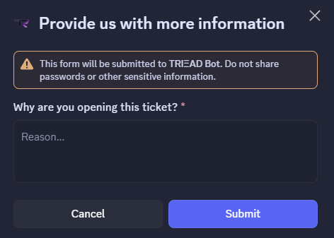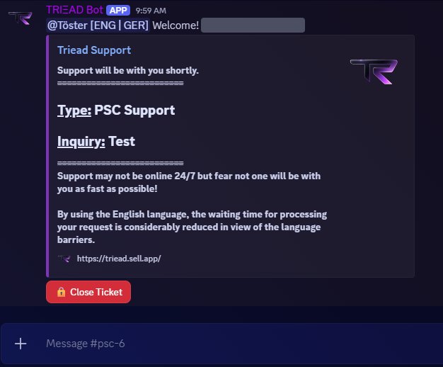 After clicking on the ticket you just created, wait for an available staff member. They will check whether the products are in stock and forward you to the person responsible for the transaction. You are welcome to direct message this person.
