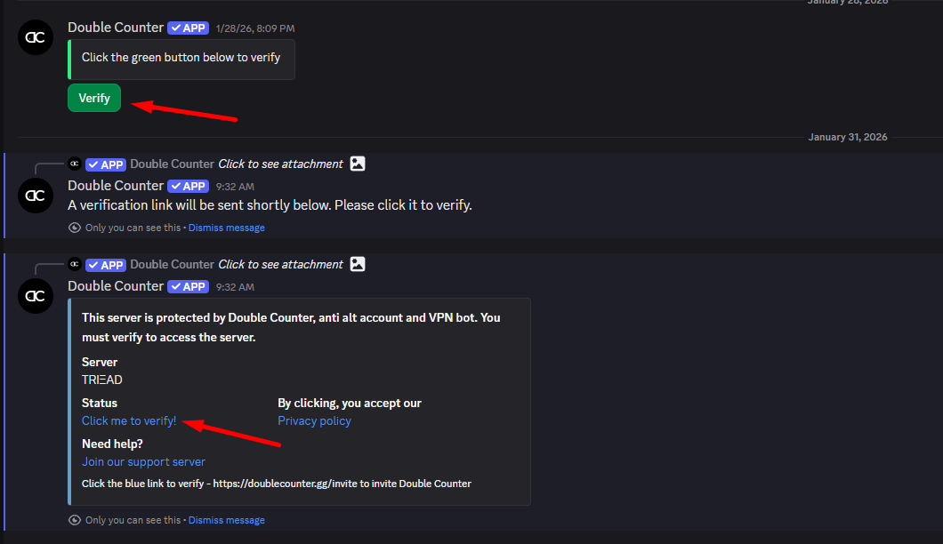 Go to the “#┌✅│verification” channel. Click on the green button. Then click on the bot's message “Click me to verify” and follow the instructions on the website.